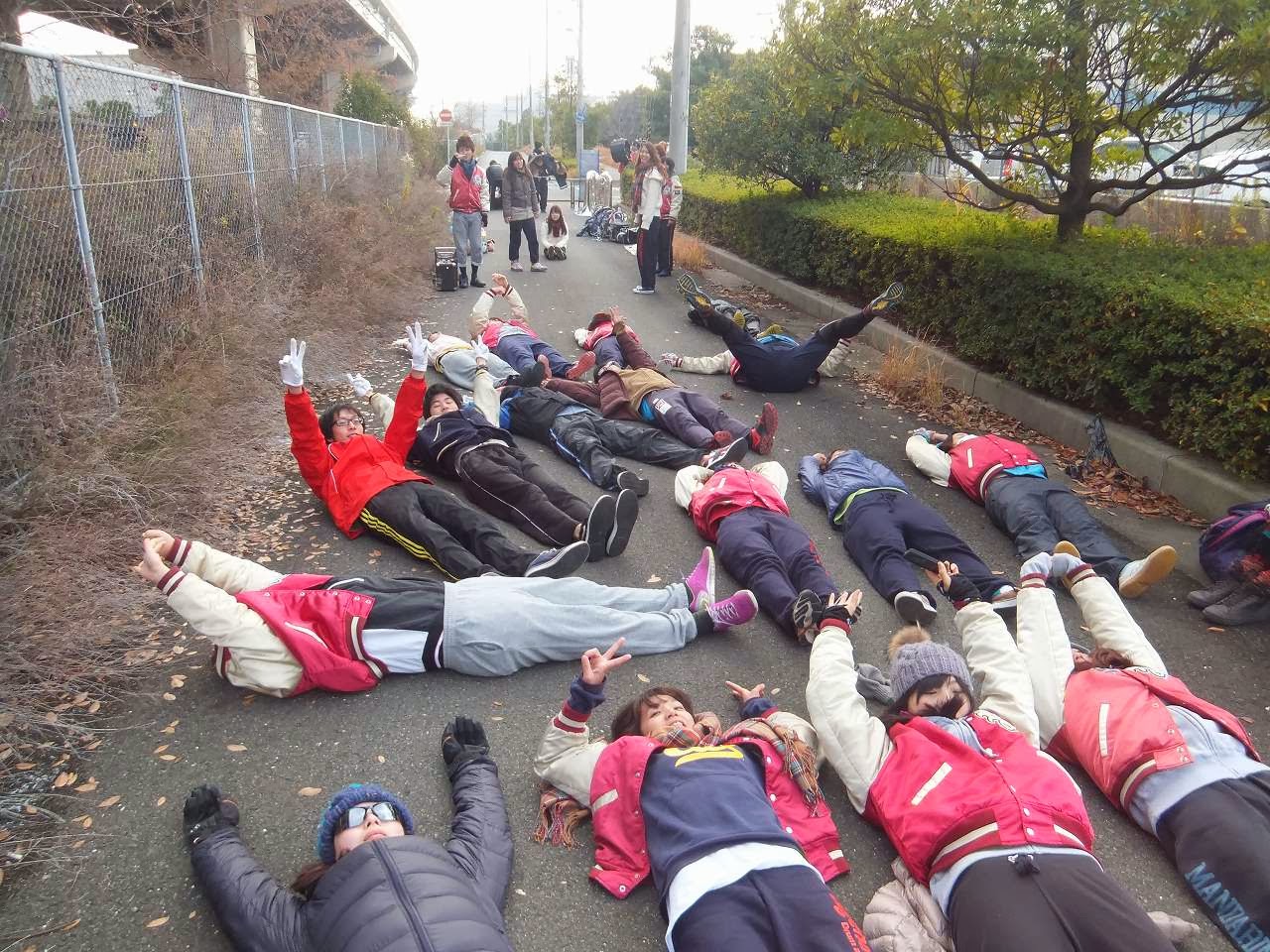 まずは外でのストレッチ!!寒いので練習で怪我しないようにたっぷりします。
