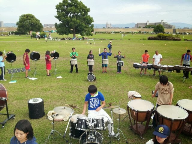 基本的な動作なのですが、久しぶりの太間公園だったので、体育館とは違い歩きづらかったです(+o+)足のテンポをあわせないと、姿勢気にせんと、楽器の高さは大丈夫かななどと頭フル回転させながら歩かないといけないので、頭レベルの低い私は毎回ドキドキしています(/_;)