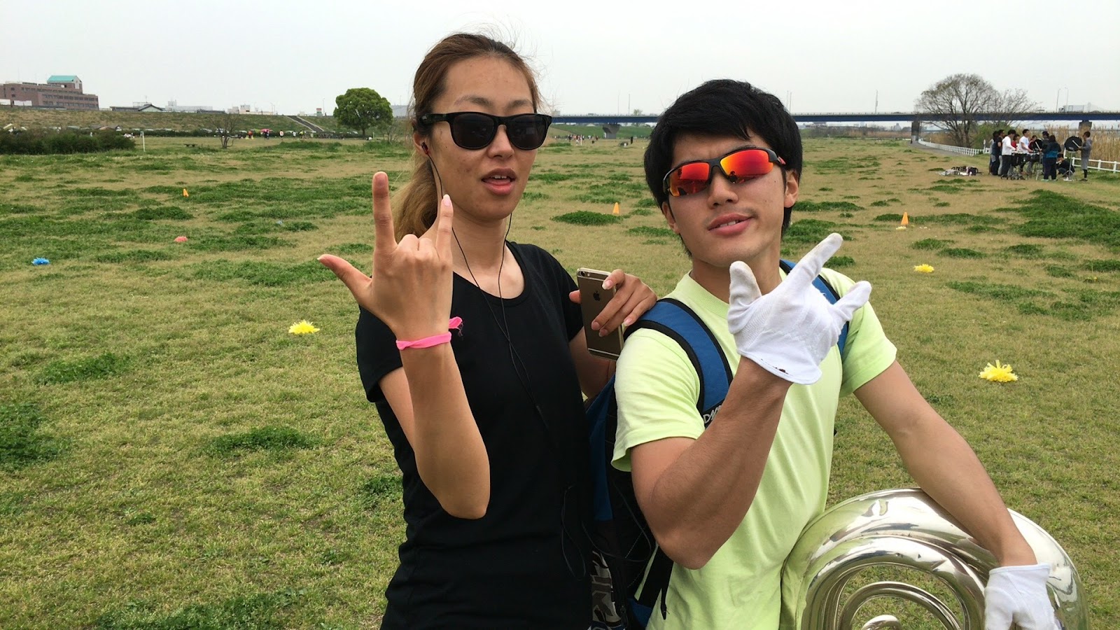跳んだり、フラッグを振ったりしました